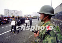 中國安徽省繁昌縣三十日上午在該縣體育場召開“公捕公判”大會。公開逮捕了十名犯罪嫌疑人并對十一名犯罪分子進行了宣判。中新社圖 吳芳 攝