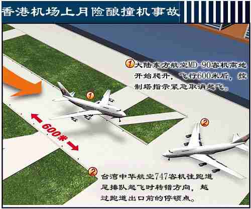 圖文:臺灣客機香港機場入錯道險撞大陸客機 2001年06月01日 10:22 ![]() 中新網香港6月1日消息:上個月二十三日,香港新機場險些發生撞機意外。臺灣中華航空一架正在跑道滑行的波音747-200飛機,誤闖跑道保護區,差點與當時正在跑道加速起飛的大陸東方航空MD-90客機碰撞。香港民航處控制塔職員發覺,立即通知東航客機緊急煞停,及時化解一場危機。 香港民航處官員昨天指出,這場意外沒有人受傷,但是民航處已要求臺華航提出解釋。 據報道,這架東航編號MU512號客機原預定飛往寧波,當時在機場南跑道已高速滑行六百米,準備起飛;機師突然接獲控制塔通知,有一架華航客機的機頭相當接近跑道末端,要求東航客機緊急煞停。 東航客機煞停后,駛入滑行道,重新等候起飛。華航客機也被命令離開跑道支路,沿滑行道前行至跑道尾端,等待起飛。 雖然事件沒有乘客受傷,但東航機上乘客表示,當飛機緊急煞停時,機內情況非;靵y,乘客尖叫,但幸好所有乘客都綁上安全帶,沒有人被拋出座位,只是有不少乘客在座位上向前沖。 編號CI641的臺灣華航客機,機上載有202名乘客,預定飛往曼谷。事發時,華航客機正在跑道末端的滑行道“排隊”等候駛入跑道;但因機頭轉錯方向,面向跑道。 香港民航處發言人承認,華航客機因轉錯方向,超越跑道的停頓點(跑道與滑行道之間的緩沖區);而跑道另一端有一架東航客機駛近,控制塔人員為安全計,要求東航客機緊急煞停。 香港民航處發言人強調,即使華航客機機頭超越停頓點,過于接近跑道,但與跑道仍有七十公尺距離,與東航客機逾三千公尺距離;而東航客機屬較小型飛機,毋須滑行到跑道末端才起飛,就算控制塔不采取行動,也不會出現兩架客機碰撞的意外。控制塔要求高速滑行的飛機取消起飛程序,是正常的預防事故措施。 民航處發言人表示,此次華航客機機頭超越跑道停頓點事件,過去很少發生;而塔臺人員并未向華航客機機師發出不正確指示,民航處已要求有關航空公司提交書面解釋。中華航空及東方航空公司香港辦事處均拒絕對事件評論,東方航空也拒絕透露客機上的乘客人數。據悉,當天東航使用的MD─90客機,可載客175人。