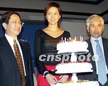 奧林巴斯光學工業株式會社,二日在京舉行奧林巴斯(中國)投資公司在京成立儀式,著名影視演員粱詠琪小姐(中)作為奧林巴斯形象代言人出席慶祝儀式。中新社記者 錢興強 攝