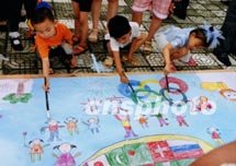 六月一日,湛江海濱公園洋溢著兒童節日的歡樂氣氛,兒童們在歡欣雀躍的游園活動中接受了奧運精神的教育。圖為兒童即席揮毫作畫支持北京申奧。中新社記者 陳祥勝 攝