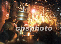 藏歷四月到拉薩大昭寺內(nèi)的釋迦牟尼佛像前頂禮膜拜的藏民人如潮涌。藏歷四月是藏族著名的“轉(zhuǎn)經(jīng)節(jié)”,據(jù)說是佛主誕生、圓寂、成佛和文成公主進藏的日子。中新社記者 滿會喬 攝