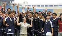 ![]() 歌手高崎6月6日下午參加鳳凰衛(wèi)視申奧車隊(duì)的“明星隊(duì)”,準(zhǔn)備與陜西國力足球隊(duì)一比高低。魏孝明 攝