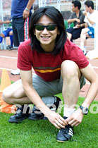 歌手高崎6月6日下午參加鳳凰衛視申奧車隊的“明星隊”,準備與陜西國力足球隊一比高低。 中新社圖 魏孝明 攝