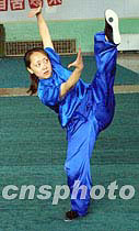 ![]() 第三屆世界武術錦標賽劍術冠軍周淑紅為“萬里行”車隊表演一套八卦拳,以表達自己對北京舉辦奧運會的的熱切期盼。魏孝明 攝