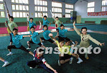 圖:曾靜漪與甘肅少年武術隊員為北京申奧助威
