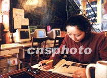 西藏拉薩街頭近來興起多處藏式酒吧,為拉薩市民增添了休閑去處。藏族女孩德吉在一家環(huán)境幽雅的酒吧內(nèi)愜意地讀書。中新社記者 滿會(huì)喬 攝