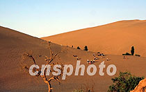 中新網(wǎng)敦煌6月12日消息:(記者呂振亞)西出嘉峪關(guān),“北京——莫斯科申奧萬(wàn)里行”鳳凰車隊(duì)今天中午在敦煌安營(yíng)扎寨。 北京時(shí)間下午七時(shí),敦煌上空的太陽(yáng)依然“高高在上”,車隊(duì)同仁頭頂烈日,驅(qū)車來(lái)到鳴沙山下月牙泉邊。 鳳凰衛(wèi)視主持人曾靜漪一聲“令”下,全體將士齊聲應(yīng)答:“挑戰(zhàn)極限,喲!”一時(shí),將士們朝沙山上沖去,身后留下深深的足跡。大家開(kāi)心地歡呼,隨隊(duì)的北京電信衛(wèi)星通訊車的小伙子還在沙坡上踩出了“五環(huán)旗”,隨行記者把這一精彩瞬間永恒珍藏,并將隨著我們一路遠(yuǎn)征莫斯科。(完) |