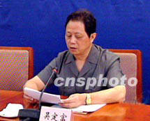 中共中央紀委監察部十五日在北京召開新聞發布會,通報中共遼寧省沈陽市原市委副書記、市長慕綏新和原市委常委、副市長馬向東等嚴重違紀違法案件。圖為中央紀委常委、秘書長、新聞發言人吳定富介紹案件情況。