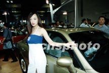 2001第九屆上海國際汽車工業展覽會六月十八日至二十四日在上海世貿商城等三個展館同時舉行,參展商紛紛請來美女協助展示名車。中新社圖 姜煜 攝