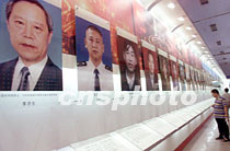 北京舉行的中共建黨80周年圖片展上,為中國建設作出巨大貢獻人物的肖像形成一面“功勛墻”。在中美撞機事件中犧牲并被授予“海空衛士”稱號的王偉肖像也在其中。如今美軍偵察機已在海南陵水拆卸,準備用俄羅斯巨型運輸機運走。中新社記者 滿會喬 攝