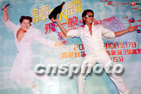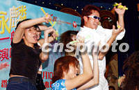 香港著名歌星譚詠麟28日在繽紛荷里活餐廳舉辦記者會(huì),為八月份「譚詠麟2001──飛一般演唱會(huì)」造勢(shì)。中新社傳真 洪少葵 攝