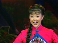 著名歌唱演員宋祖英二十九日在北京人民大會堂舉行的《紅旗頌》大型文藝晚會上演唱《映山紅》。
