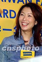 香港女演員鄭秀文29日在香港繽紛荷里活餐廳領取2001年港臺最受歡迎女演員獎項,喜上眉梢。中新社圖 洪少葵 攝