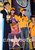 香港演星劉德華29日在香港繽紛荷里活餐廳領(lǐng)取2001年港臺(tái)最受歡迎男演員獎(jiǎng)項(xiàng)時(shí),接受影迷贈(zèng)送的祝賀禮物。中新社圖 洪少葵 攝