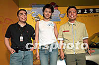 歌星梁詠琪與「天堂」網絡游戲的代表出席儀式。歌星梁詠琪4日在香港為「天堂」網絡游戲出任代言人,梁詠琪與「天堂」網絡游戲的韓國(右)與臺灣代表(左)一起出席儀式。中新社圖 鄧慶樂 攝