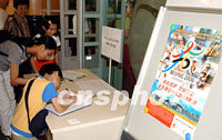 隨著申辦奧運城市揭曉時間的臨近,全國各地支持北京申辦2008年奧運的熱情日益高漲。位于香港中央圖書館的香港市民支持北京申辦2008年奧運簽名處來自不同職業(yè)的人士紛紛踴躍簽名。中新社記者 任海霞 攝