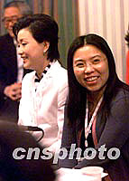 7月9日,北京申奧代表團在莫斯科金環(huán)酒店進行第一次陳述排練。圖為代表團成員鄧亞萍(右)、楊瀾。中新社記者 王瑤 攝