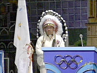 首先代表多倫多發(fā)言的是一位盛裝的土著代表,他對在場的奧委會委員們說,歡迎各國朋友能到“偉大的城市多倫多”。他希望2008年奧運會能在多倫多舉辦。