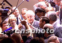 圖為巴黎代表團陳述后退場時,法國總理若斯潘接受記者采訪。中新社記者 王瑤 攝