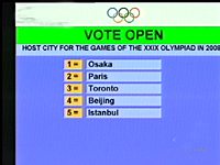 中新網莫斯科7月13日消息:在莫斯科舉行的國際奧委會第112次全會上,在模擬投票結束后,21點50正式的投票開始。在第一輪的投票中,日本大阪首先被淘汰。