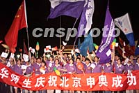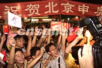 ![]() 北京天安門廣場十三日夜晚聚集數十萬民眾,慶祝北京申奧成功。中新社記者 毛建軍 攝