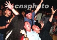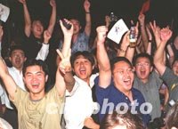 北京申奧成功激發了北京市民的愛國熱情,十三日晚,三里屯酒吧街的群眾自發地聚在一起歡慶勝利。中新社圖 史利 攝