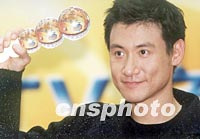 2001CCTV-MTV音樂盛典獲獎歌手二十日晚在京舉行頒獎儀式。張學友獲亞洲年度最杰出男歌手獎。中新社記者 錢興強 攝