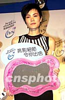 歌星王菲24日在香港出席海倫仙度絲(Head & Shoulders)舉行全新廣告預演會,并展示她所獲頒的紀念品。中新社圖 鄧慶樂 攝