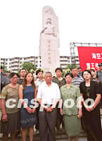 圖文:“海空衛(wèi)士”王偉的塑像在浙江湖州落成 2001年08月02日 06:19 ![]() 中國(guó)“海空衛(wèi)士”王偉塑像落成典禮八月一日在浙江省湖州市鳳凰公園廣場(chǎng)舉行,由花崗巖制作的王偉塑像高10米、寬2.2米、厚2.3米、重約80噸,采用的是南京藝術(shù)學(xué)院青年教師、著名雕塑家李廣玉構(gòu)思的設(shè)計(jì)方案。中新社圖 張全躍 攝 ![]() 中國(guó)“海空衛(wèi)士”王偉塑像落成典禮八月一日在浙江省湖州市鳳凰公園廣場(chǎng)舉行,王偉父母王明、王月琴(中)、妻子阮國(guó)琴(右)、姐姐(右四)等親屬與近千名各界群眾和當(dāng)?shù)伛v軍官兵參加了儀式并合影留念。中新社圖 張全躍 攝