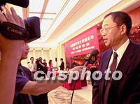 圖文:“首屆世界華文傳媒論壇”九月南京開幕 2001年08月02日 19:49 ![]() 中國新聞社二日在北京人民大會堂舉行首屆世界華文傳媒論壇新聞發布會,社長劉澤彭接受新聞界采訪,準備迎接全球華文新聞界的盛會。中新社記者 賈國榮 攝 ![]() 中國新聞社與南京市政府二日在北京人民大會堂舉行新聞發布會,海外華文媒體的“峰會”——首屆世界華文傳媒論壇今秋九月將在南京召開,由江蘇波司登股份有限公司獨家協辦。中新社記者 賈國榮 攝