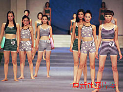 九九中國民族時裝模特大賽十六日晚在南寧結(jié)束,圖為選手們在泳裝比賽中。中新社記者 錢興強(qiáng) 攝