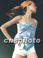 戴安娜2001世界精英模特大賽中國預選賽暨金沙灘模特大賽十日在青島舉行。圖為選手進行絲巾創意設計比賽。中新社記者 錢興強 攝