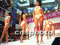 歐迪芬“世紀風采”內衣節十日在北京東安市場舉行。模特兒們展示出歐迪芬為中國女性打造出的2001年春夏內衣。中新社記者 史利 攝