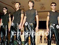 2001年新絲路中國模特大賽山西選拔賽十五日在太原市舉行,來自山西各地的四十七名男女模特選手參加了比賽。圖為選手進行晚裝和正裝展示。中新社記者 錢興強 攝