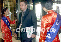 2001年APEC第三次高官會(huì)八月二十三日將在遼寧大連開(kāi)幕,主會(huì)場(chǎng)香格里拉酒店的侍應(yīng)生佩帶APEC標(biāo)志迎接與會(huì)人員。中新社記者 滿(mǎn)會(huì)喬 攝