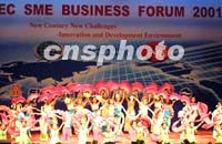 包括中國在內的APEC成員體中小企業家約六百人參加二十七日在上海開幕的APEC中小企業工商論壇。圖為開幕式上的歌舞表演。中新社記者 潘索菲 攝