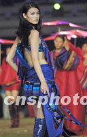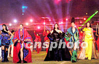 大運(yùn)會(huì)閉幕式三十日晚在北京工人體育場(chǎng)進(jìn)行最后的彩排,馬艷麗、于娜等五位中國(guó)名模出演《歷代服飾》。中新社圖 劉殊瑾 攝