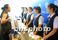 第八屆APEC財長會議將于六日在中國江蘇省蘇州市舉行,主辦城市蘇州市為確保參加采訪本次會議的海內外新聞記者發稿,在新聞中心安裝了先進的通信設施。圖為中國電信的服務生五日在解答記者的問題。中新社圖 蔣振江 攝