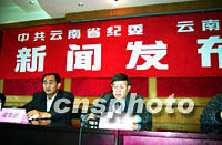7日上午,中共云南省紀(jì)委、省監(jiān)察廳向新聞媒體通報(bào)了新近查處的七名廳級(jí)和一名處級(jí)官員嚴(yán)重違法違紀(jì)的經(jīng)濟(jì)案件。通報(bào)說,這八名前官員違法的重要教訓(xùn)是:一些地區(qū)部門對(duì)官員的監(jiān)督管理存在諸多薄弱環(huán)節(jié)和漏洞,權(quán)力缺乏有效制約。圖為新聞發(fā)布會(huì)現(xiàn)場(chǎng)。中新社記者 納家驊 攝
