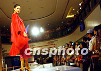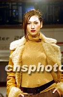 香港名模李嘉慧11日為名牌時裝i BLUES 及MARINA RINALDI,演示2001最新秋冬系列服飾。中新社圖 洪少葵 攝