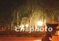 北京武警官兵十一日深夜開始加強美國駐華使館周圍的護衛。初夜時分美國遭受恐怖分子的全面襲擊。中新社記者 賈國榮 攝
