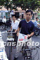九月十二日清晨,上海的報紙成為搶手貨,市民特別關注美國遭受恐怖襲擊的情況。中新社記者 潘索菲 攝