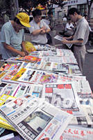 當上海市民獲知美國遭受襲擊的消息后,九月十二日一早,市民紛紛爭購報紙關注事態發展情況。中新社記者 潘索菲 攝
