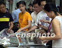 廣州市民十分關注美國受到恐怖襲擊事件。十二日清晨,人們紛紛上街購買當天報紙,令不少報紙脫銷,報社不得不連忙加印。某晚報還加出號外。中新社圖 梁永強 攝