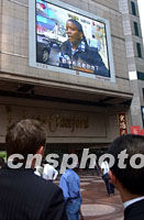 香港時代廣場的電視大屏幕前,美國遭受恐怖襲擊的消息吸引許多人駐足。中新社記者 任海霞 攝