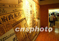 南京在原國民黨總統府里新開辦史料展覽,其中華文報刊當年對日本在二戰投降的報道版面,至今令人難忘。出席華商大會和華文傳媒論壇的世界華人華僑貴賓,“九·一八”紀念抗日戰爭之日將來此參觀。中新社記者 賈國榮 攝