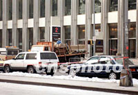一九九三年二月二十六日,紐約世界貿易中心二號摟曾遭恐怖組織用汽車炸彈襲擊,在停車場與一樓間炸了個洞,外表未受損傷。死六人傷千人。圖為被炸一周后的檔案照。中新社圖 龔文謨 攝
