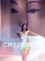 日前,在北京舉辦的2001新絲路模特大賽北京分賽區決賽上,模特選手身穿自裁服飾表演。中新社記者 錢興強 攝
