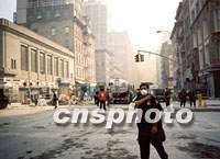 圖文:恐怖襲擊事件發生后曼哈頓下城目擊記 2001年09月16日 01:48 ![]() 平時熱鬧非凡的紐約唐人街中心堅尼路,恐怖襲擊后已成警戒區,路人上只有急救人員和軍警,很少見到行人。中新社圖 ![]() 圖中煙霧處就是美國紐約倒塌后的世貿大樓。現在街上只有戴面罩的軍人和警察來回巡視。中新社圖