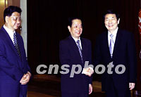 國務院總理朱镕基15日結束對愛爾蘭、比利時、俄羅斯和哈薩克斯坦四國的正式訪問后回到北京。國務院副總理錢其琛、國務委員王忠禹等前往人民大會堂迎接。中新社記者 滿會喬 攝